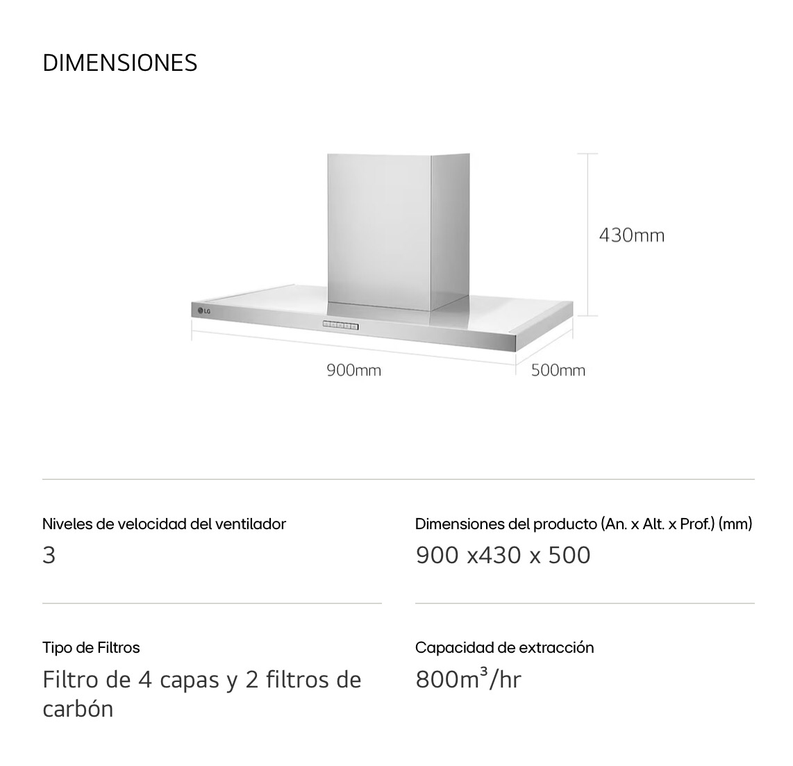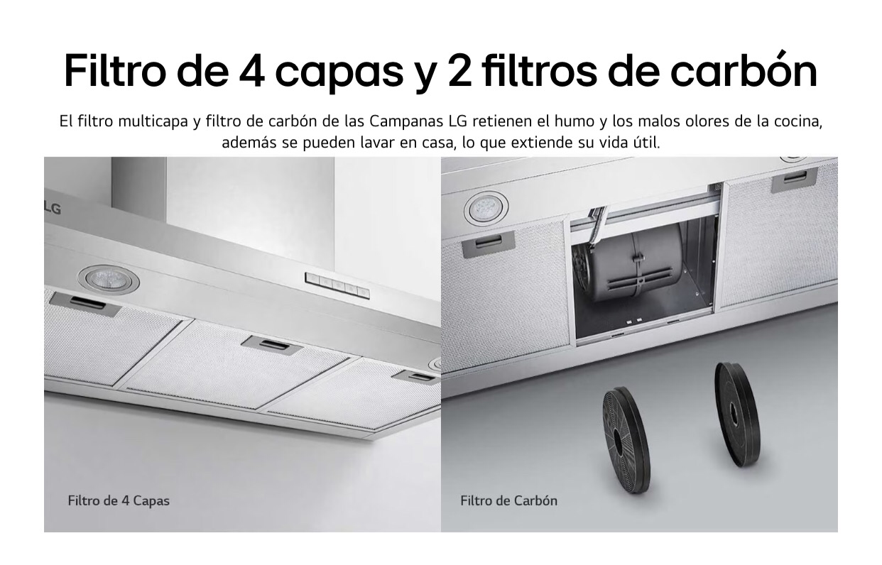 Campana Extractora LG 90cm (Filtro de 4 Capas y Carbón)