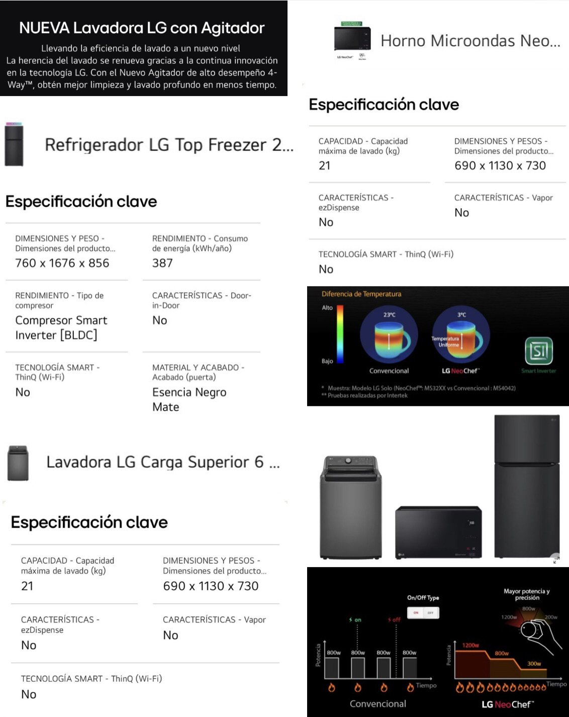 Lavadora LG 21 kg + Horno Microondas NeoChef™ 1.5 pies³ + Refrigerador 20 pies Negro