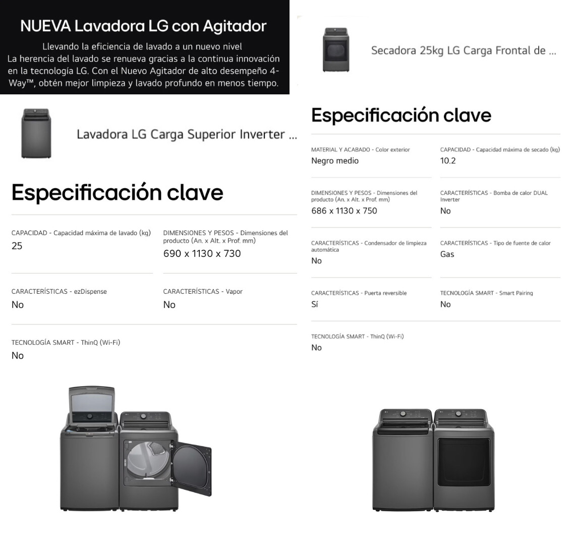 Lavadora LG Inverter 25 Kg + Secadora de gas 25 Kg Color Negro