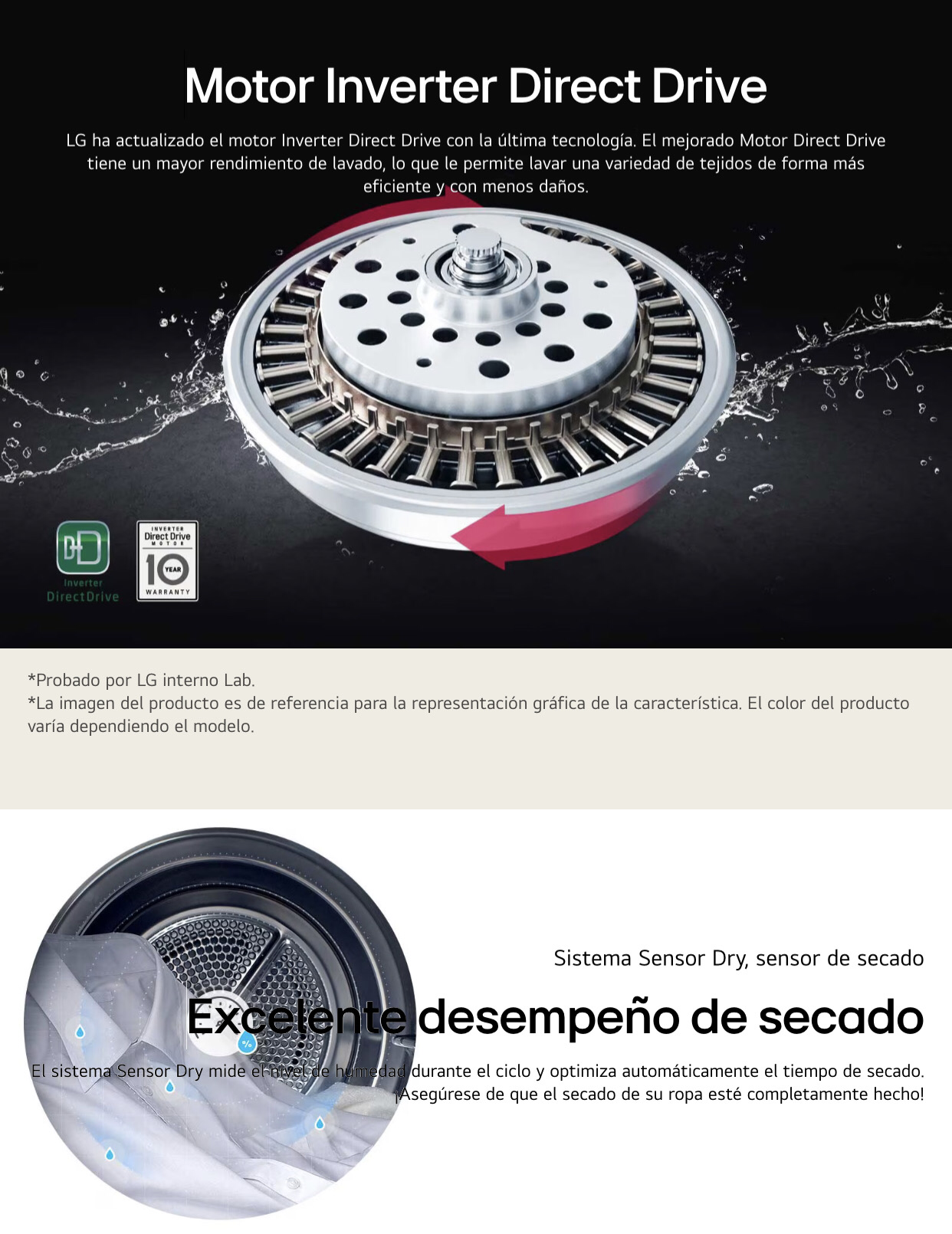 Lavadora LG Carga Superior Inverter Direct Drive™ con sistema de lavado 6 Motion DD, 25 Kg – Color Negro + Secadora de gas LG con Sensor de secado Sensor Dry y Autodiagnóstico SmartDiagnosis™, 25 Kg - Color Negro