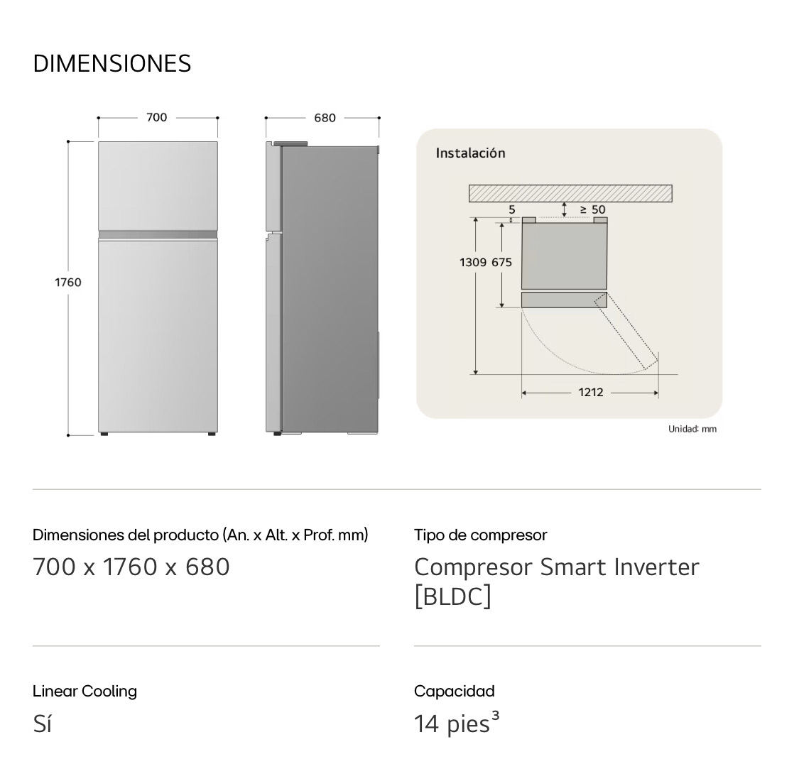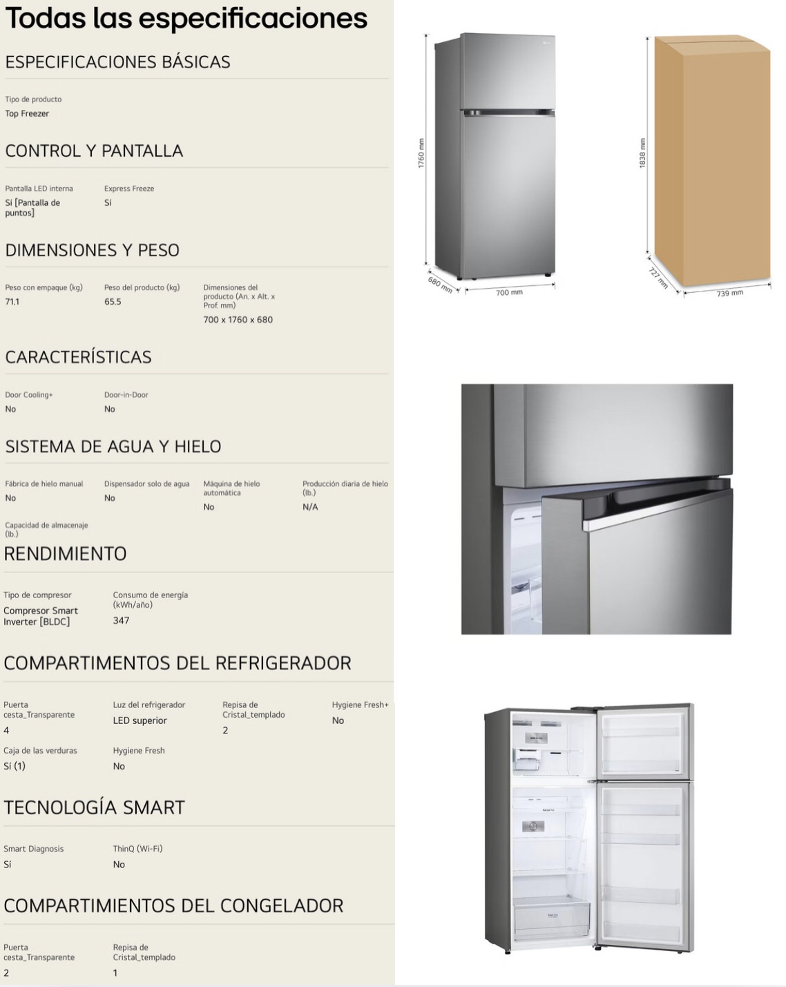 Refrigerador LG Top Freezer 14 pies³ Gris Inverter