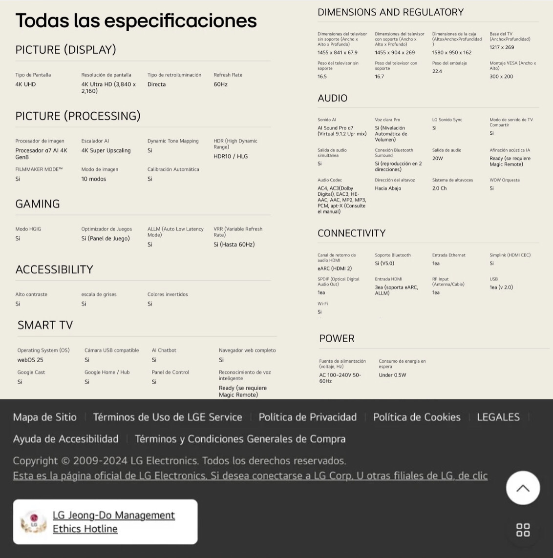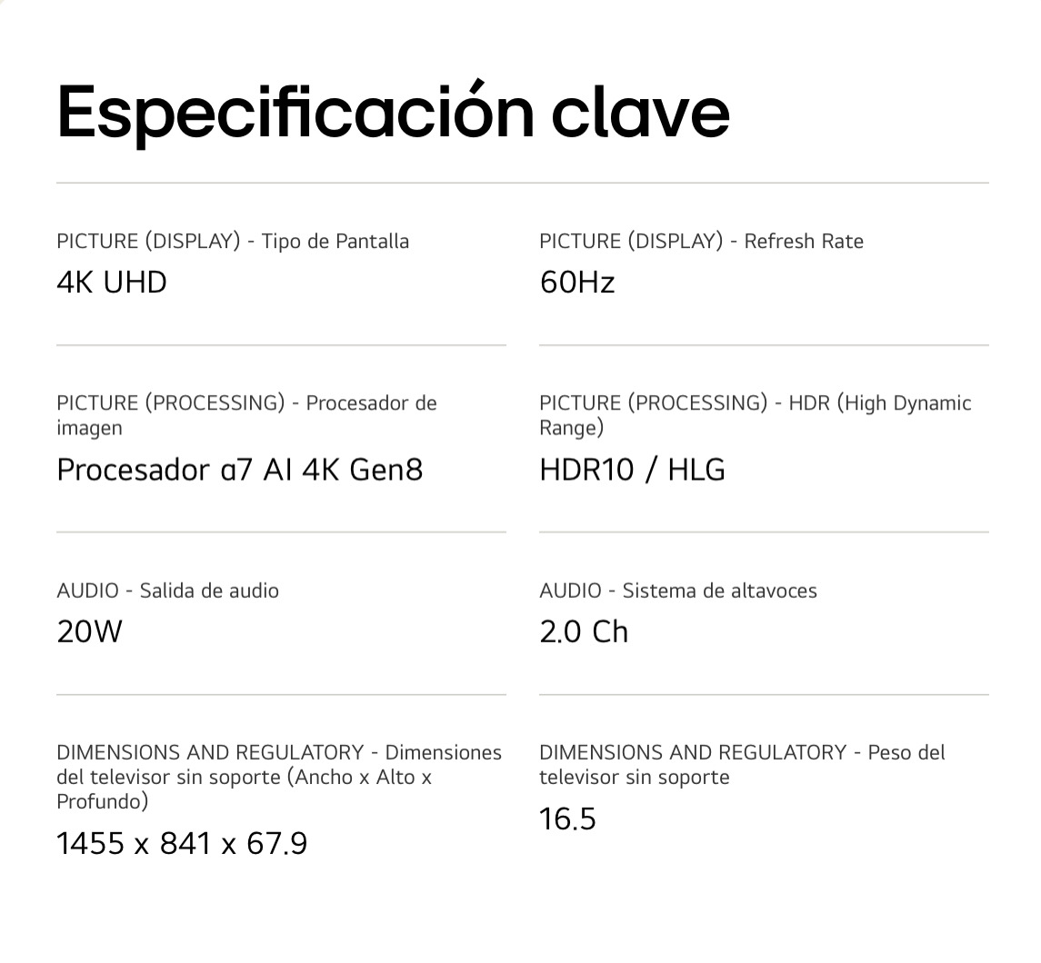 SMART TV 65 pulgadas LG UHD AI UA8000 4K - 65UA8000PSB
