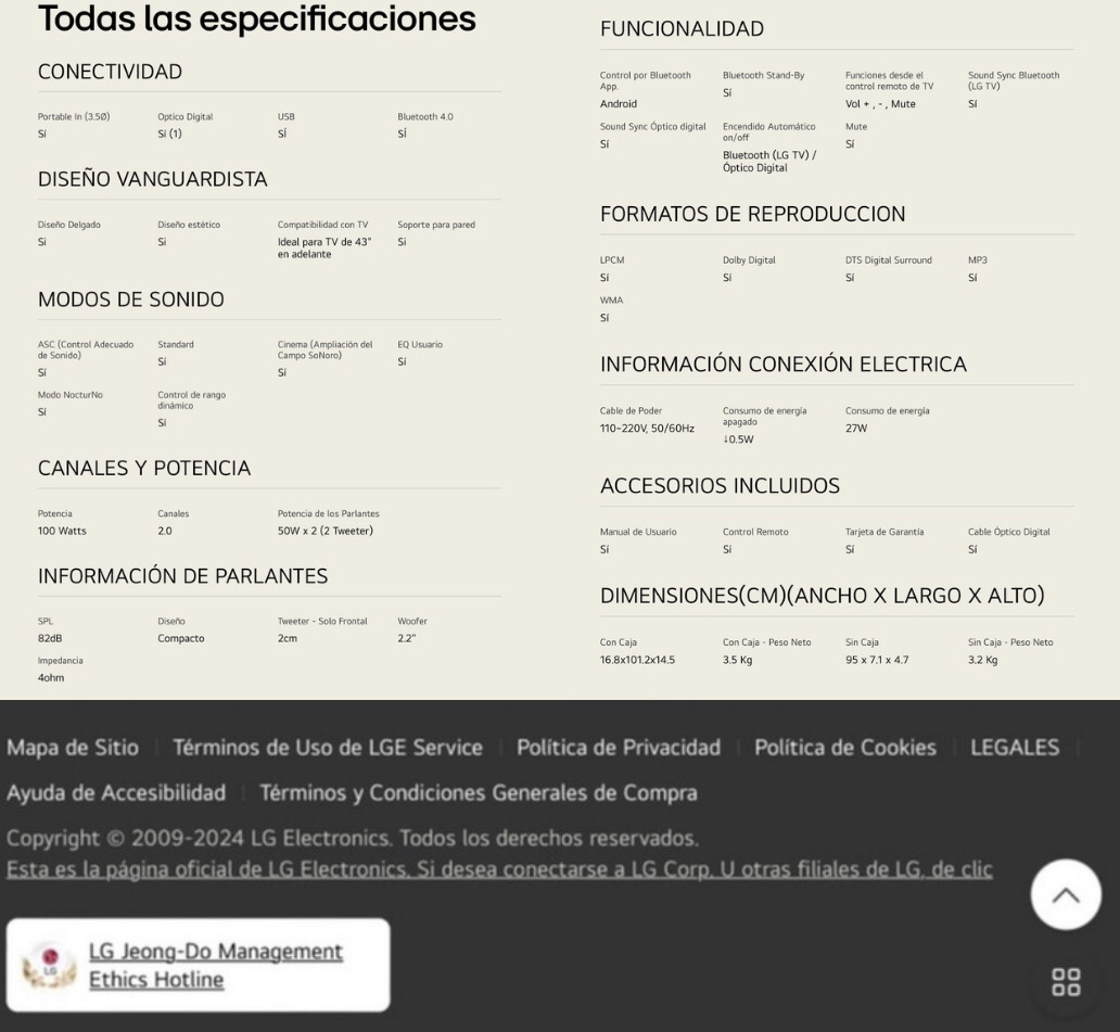 Soundbar | Barra de sonido LG SK1D Bluetooth®