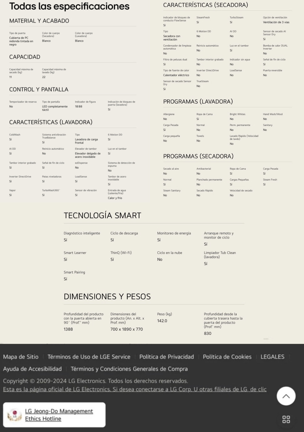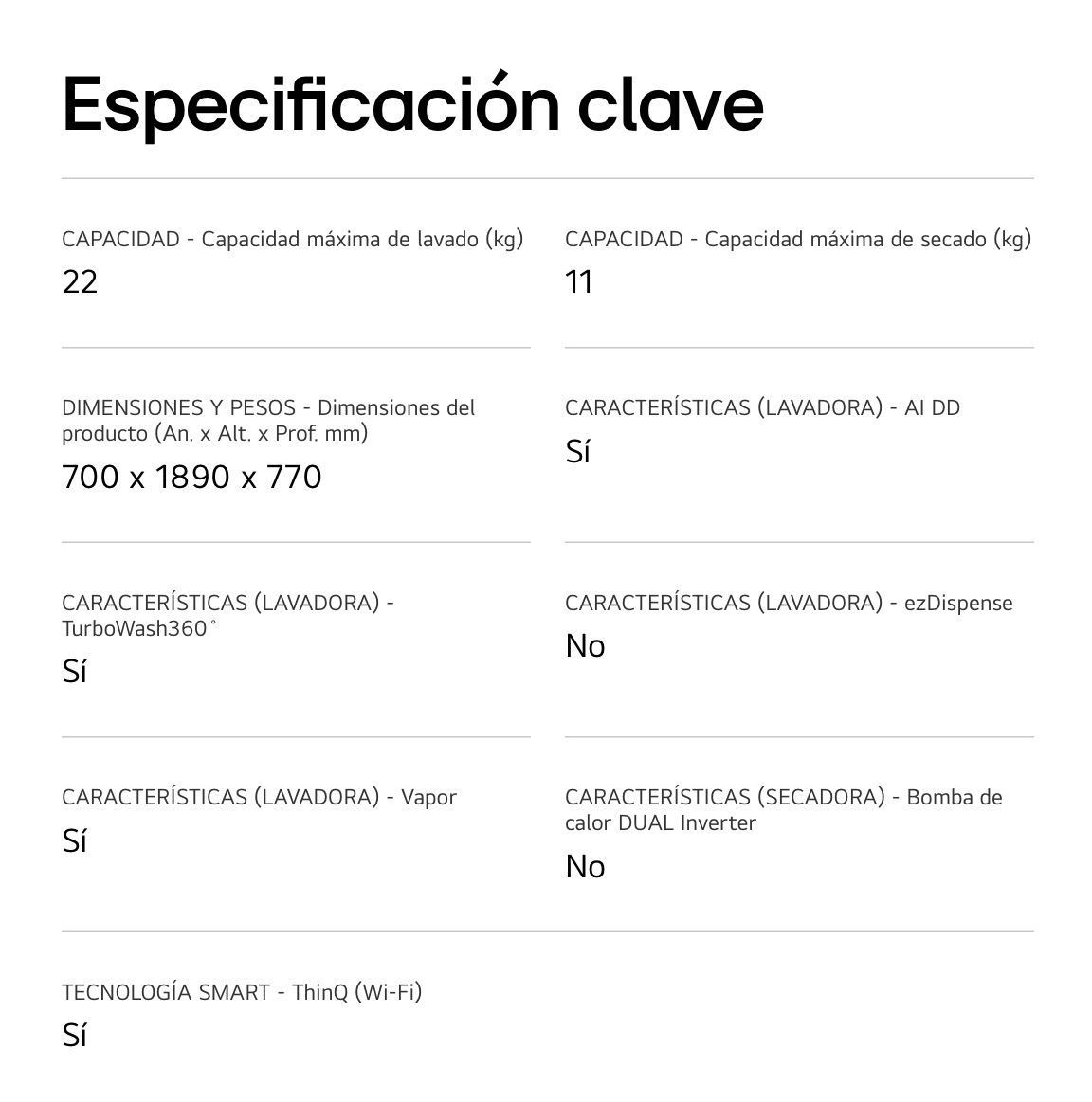 Torre de lavado WashTower™ LG con AI DD™ 22kg